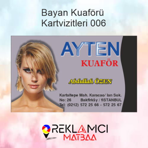 Bayan Kuaförü Kartvizitleri tasarımı, brüt 1000 adet ve katları şeklinde üretilmektedir.