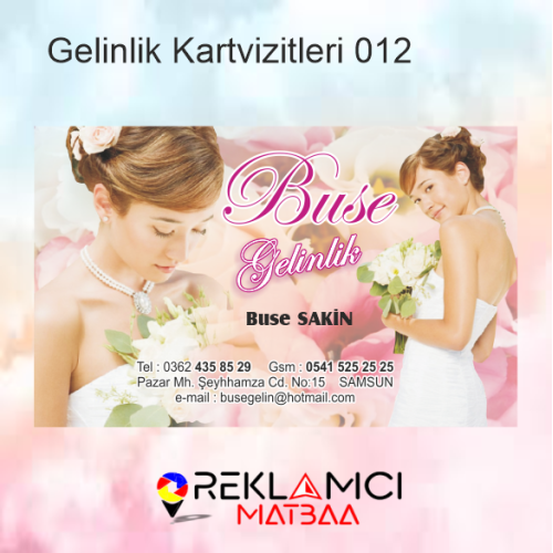Gelinlik Kartvizitleri tasarımı, brüt 1000 adet ve katları şeklinde üretilmektedir.