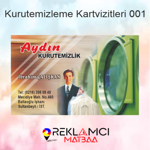 Kuru Temizleme Kartvizitleri tasarımı, brüt 1000 adet ve katları şeklinde üretilmektedir.