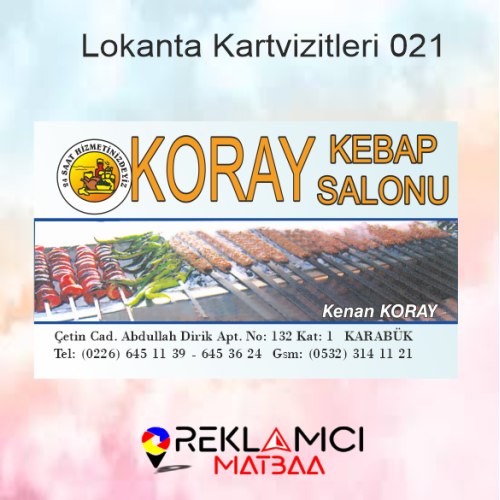 Lokanta Kartvizitleri tasarımı, brüt 1000 adet ve katları şeklinde üretilmektedir.