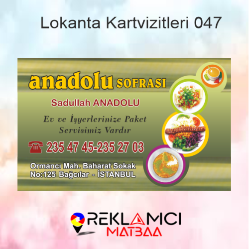 Lokanta Kartvizitleri tasarımı, brüt 1000 adet ve katları şeklinde üretilmektedir.