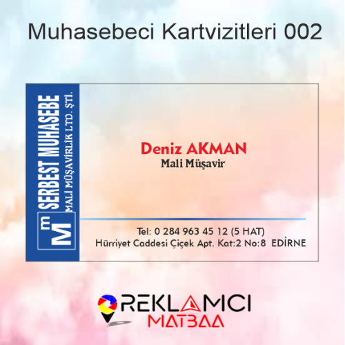 Muhasebe Kartvizitleri tasarımı, brüt 1000 adet ve katları şeklinde üretilmektedir.