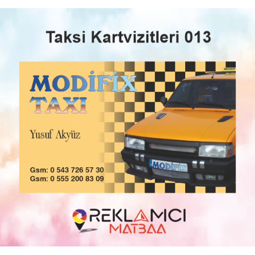 Taksici Kartvizitleri tasarımı, brüt 1000 adet ve katları şeklinde üretilmektedir.