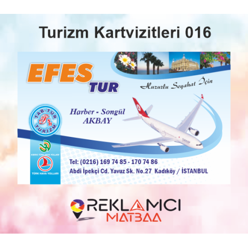 Turizm Kartvizitleri tasarımı, brüt 1000 adet ve katları şeklinde üretilmektedir.