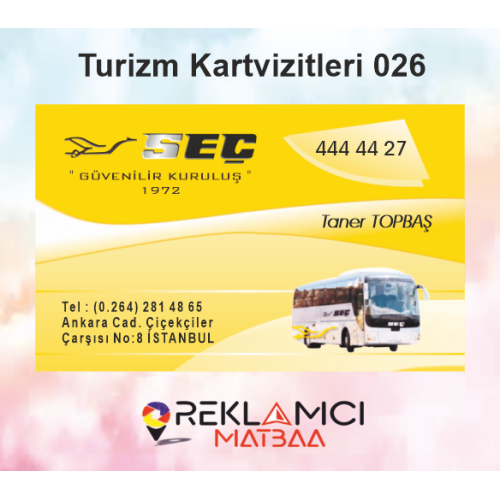 Turizm Kartvizitleri tasarımı, brüt 1000 adet ve katları şeklinde üretilmektedir.